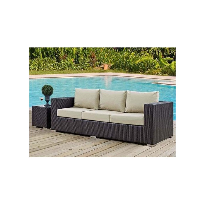 Sofá de área esterna com mesa lateral, modelo ápice em fibra sintética - Sarah Móveis Tabaco