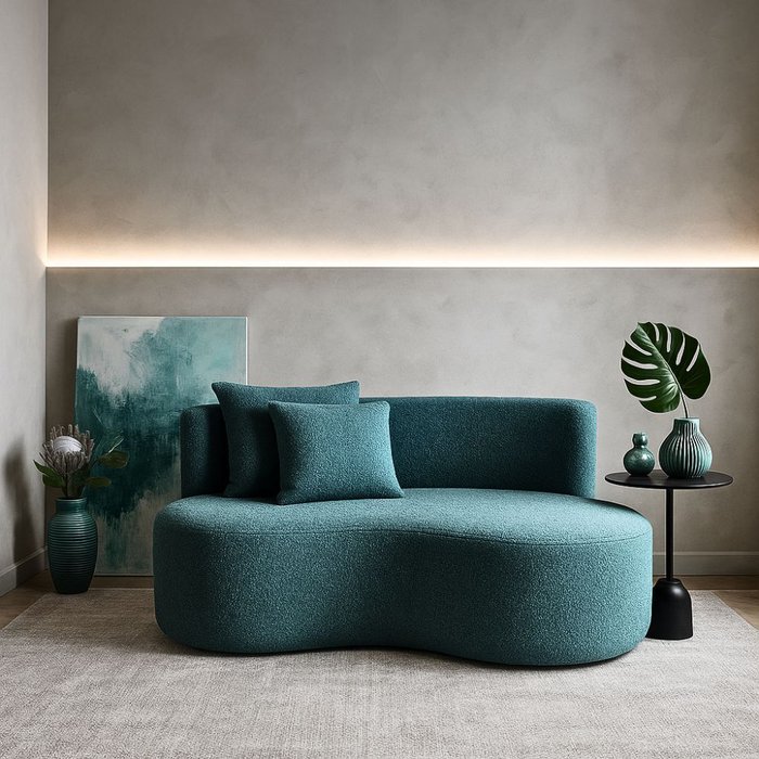 Sofá Decorativo Curvo Orgânico Nature Gaia Boucle Azul Turquesa - Montanaris Decor