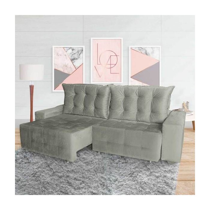 Sofá Euro Retrátil e Reclinável 2,00m Veludo Light Cinza - Ws Estofados