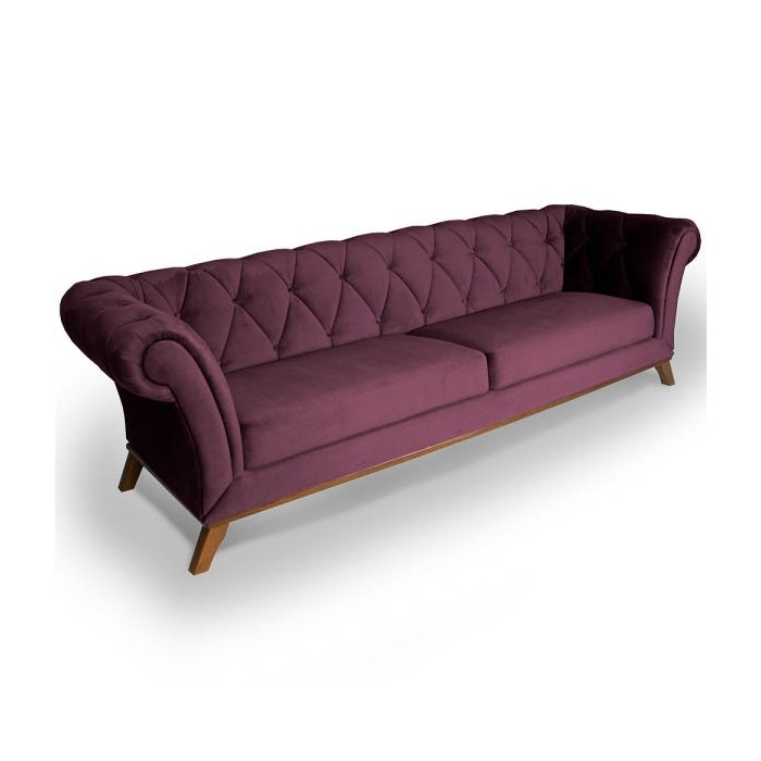 Sofá Império com Capitone 3 Lugares 1,80M Veludo Roxo - Casaepoltrona