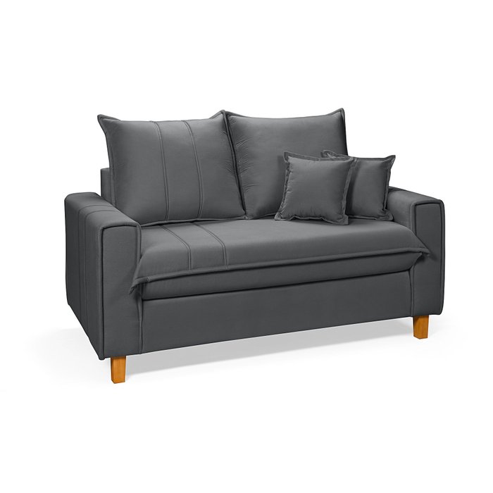 Sofa Living com Bau Multiuso 2 Lugares Suede Pes em Madeira: Cinza