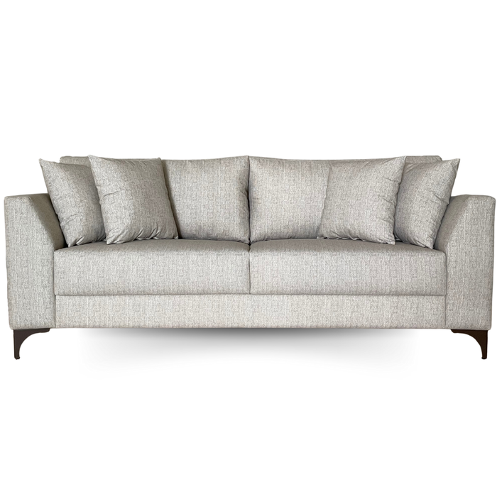 Sofá Pierri | Pé Aço Marrom & Tecido Acquablock Impermeável | Medida 220cm | Linhão Bege