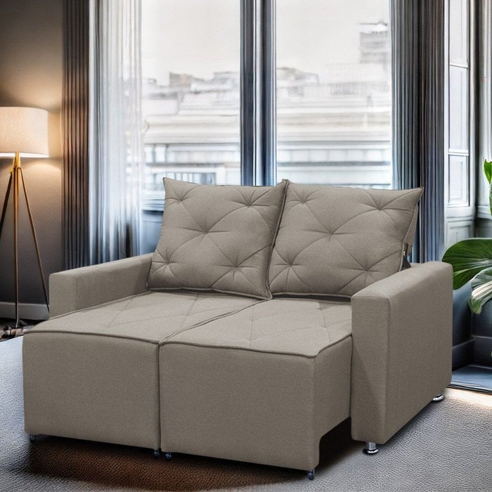 Sofá Retrátil e Reclinável 2 Lugares Bariloche 1.60cm C/ Molas - Linho Carvalho