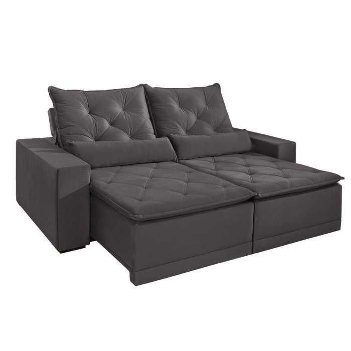Sofá Retrátil e Reclinável 4 Lugares Valência Evidence Suede Cinza Cinza