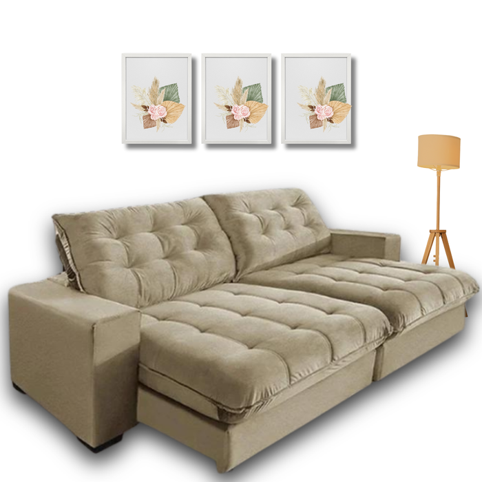 Sofá Retrátil e Reclinável Califórnia Bege, 2,10m com Molas Ensacadas
