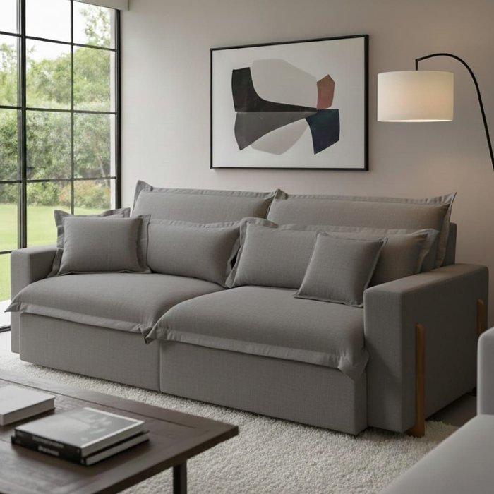 Sofá Dubai 2,10m uma peça que une elegância, conforto e qualidade. Revestido em tecido linho, oferece um toque sofisticado ao ambiente. Sua estrutura conta com espuma D-28 e pillow top de 15 cm, proporcionando máximo conforto. Os pés em madeira de eucalipto garantem durabilidade e um acabamento refinado. Acompanha 4 almofadas, agregando charme e funcionalidade à decoração. Ideal para quem busca estilo e bem-estar em um só móvel.