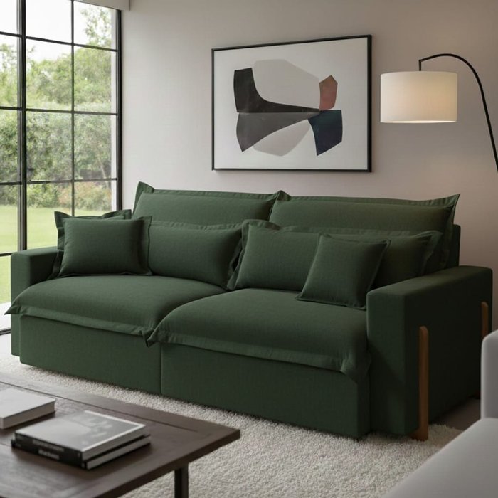Sofá Dubai 2,10m uma peça que une elegância, conforto e qualidade. Revestido em tecido linho, oferece um toque sofisticado ao ambiente. Sua estrutura conta com espuma D-28 e pillow top de 15 cm, proporcionando máximo conforto. Os pés em madeira de eucalipto garantem durabilidade e um acabamento refinado. Acompanha 4 almofadas, agregando charme e funcionalidade à decoração. Ideal para quem busca estilo e bem-estar em um só móvel.