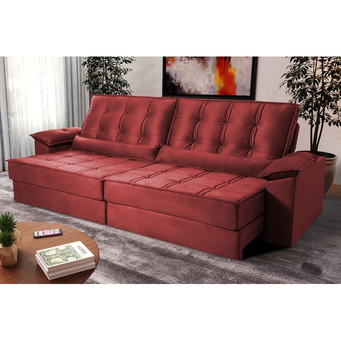 Sofá Retrátil Reclinável 250cm Ascari Suede Velut com molas Ensacadas - King House Vermelho