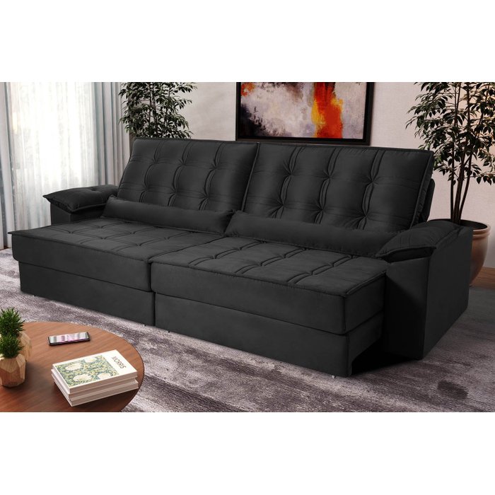 Ele possui encosto reclinável em cinco posições, proporcionando-lhe mais conforto na hora do descanso. Não para por aí: seu assento retrátil conta com espuma D35 e molas ensacadas, transformando seu sofá em uma verdadeira cama para assistir seu filme preferido.
