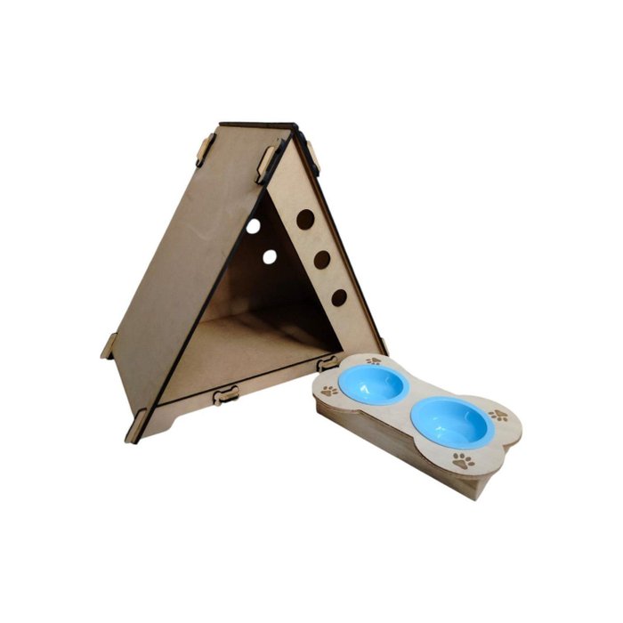Casa Pet Chalé Sumai em MDF Cru com Comedouro e Bebedouro — Conforto Completo para Seu Pet