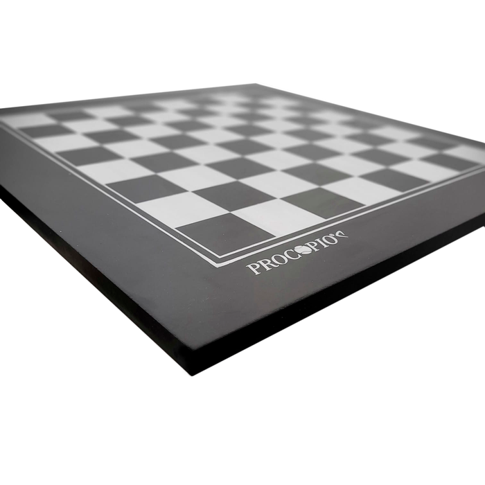 Tabuleiro de Dama e Xadrez Linha Ébano Escuro Preto e Branco