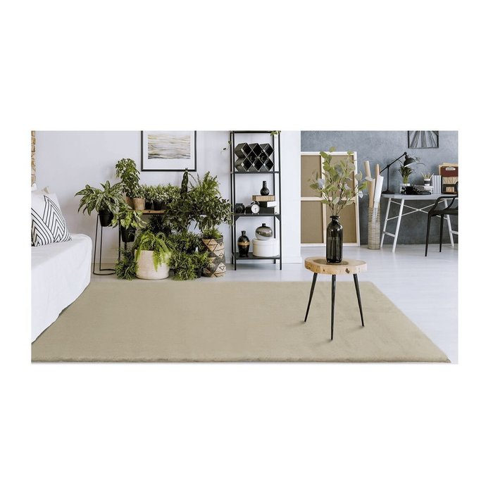 Aconchego é a melhor definição para esse tapete. Estilo pele de coelho, tem toque muito macio proporcionando conforto e a agradável sensação de satisfação. Confeccionado com 600 gramas por metro quadrado e base antiderrapante.