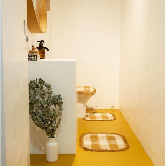 Tapete de Banheiro de Luxo Jogo 3 Peças: Caramelo com Cru Trab