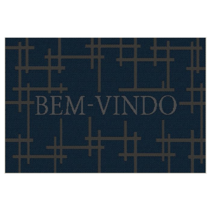 Tapete de Porta Bem-vindo ou Entrada Cross - 40 X 60 Cm - Cor Azul 20 - J Serrano Azul com detalhes grafite