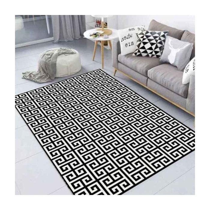 Tapete Labirinto Sala e Quarto Geométrico 2,0 x 1,4M Antiderrapante Preto e Branco Casa Dona