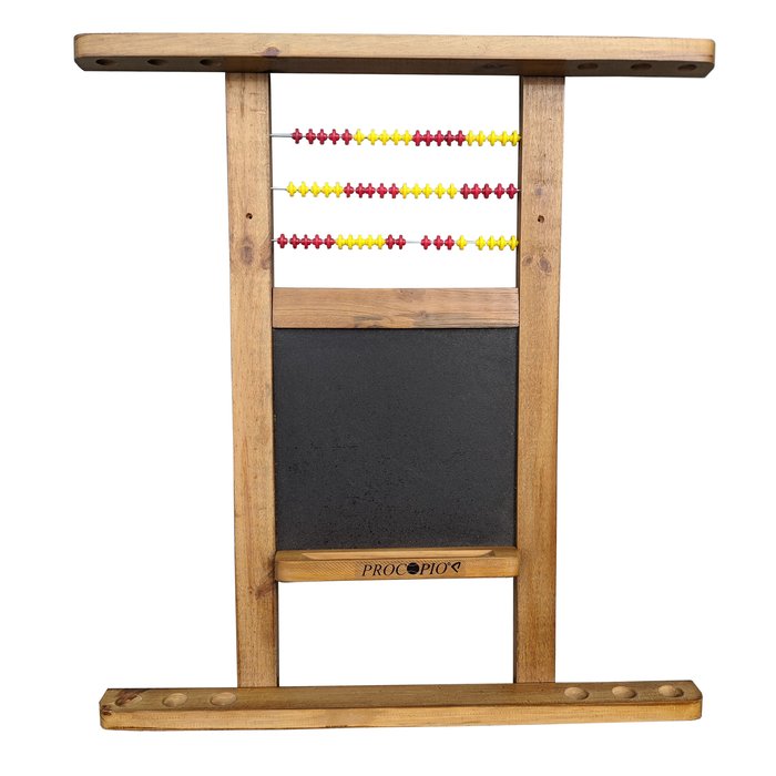 Descrição: Marcador para sinuca em madeira maciça, acabamento em verniz, suporte para 6 tacos, lousa e marcador de pontos.