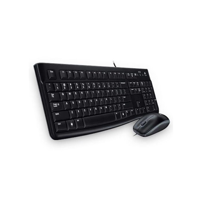 Teclado e Mouse com Fio Logitech MK120 Preto Digitação Agradável Suas mãos desfrutarão de teclas de perfil baixo e silenciosas, além de um layout padrão com teclas F em tamanho normal e teclado numérico Percurso Suave Você fará movimentos suaves com um mouse óptico preciso de alta definição para ajudar a concluir tarefas.