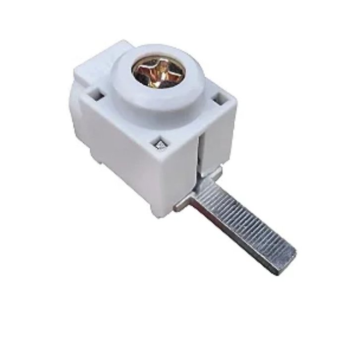 Terminal eletrico generico com saida frontal em pino de 50 mm, indicado para conexoes de cabos e componentes em instalacoes eletricas, painéis de comando e sistemas de automacao. Permite fixacao segura do condutor, facilitando montagem e manutencao de cabos em equipamentos industriais e residenciais.
