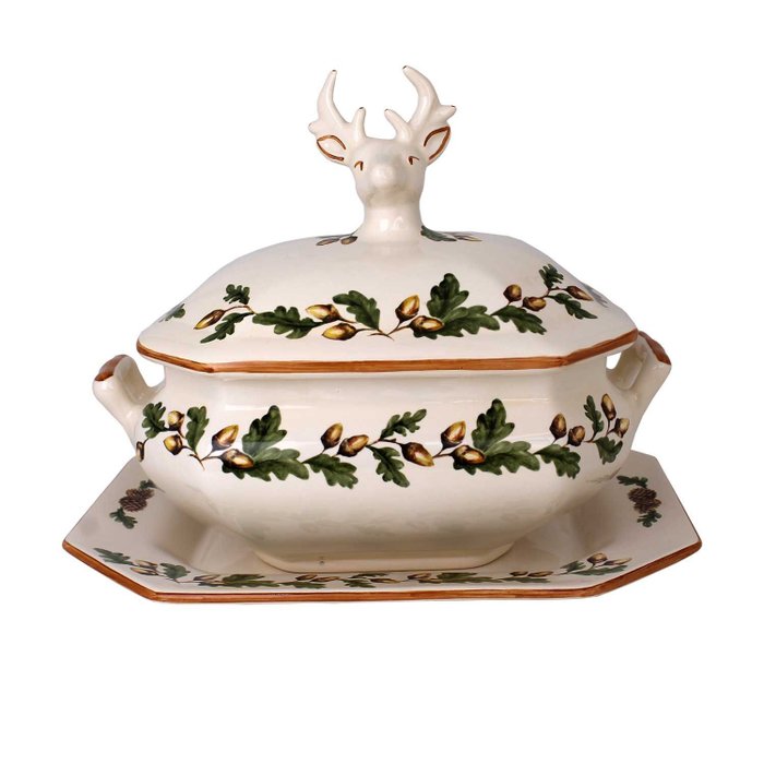 Terrina de Cerâmica Peq.c/Travessa Base Natal Alce 21x10x19cm - Luiz Salvador
