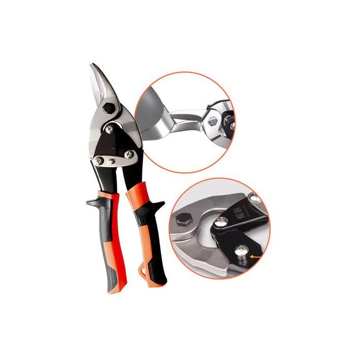 A Tesoura Manual para Chapa foi desenvolvida para oferecer cortes precisos e eficientes em chapas metálicas. Produzida com liga de aço cromo vanádio de alta qualidade e submetida a tratamento térmico de alta frequência, proporciona alta resistência, durabilidade e desempenho superior. Sua lâmina dentada e polida garante cortes afiados e consistentes, enquanto o design ergonômico reduz o esforço necessário e minimiza riscos de escorregamento. O cabo revestido em duas cores oferece firmeza, segurança e conforto durante o manuseio. Ideal para profissionais que precisam realizar cortes à esquerda com precisão.