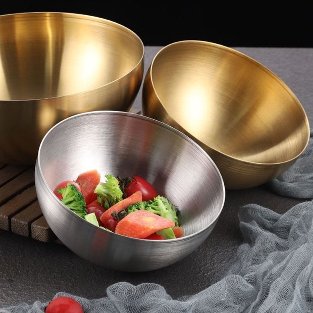 Feitos de aço inoxidável durável, esses bowls combinam estilo e funcionalidade. O acabamento em dourado e prata adiciona um brilho luxuoso a qualquer espaço. Seja para preparar, servir ou armazenar alimentos, eles são indispensáveis em qualquer cozinha.