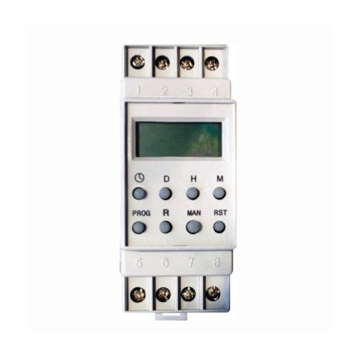 | Conhecendo o produto | Acerte o tempo dos aparelhos com o Timer Digital para Trilho DIN 56 Programações 220V. Temporizador programável indicado para a automação de piscinas, eletrodomésticos, iluminação residencial e comercial e muitos outros. De fácil utilização, há uma necessidade de se lembrar algo sobre o Timer para trilho. Ele continua sendo um aparelho eletrônico, portanto, dá choque como qualquer outro timer digital. Por isso, mantenha fora do alcance de crianças. |
