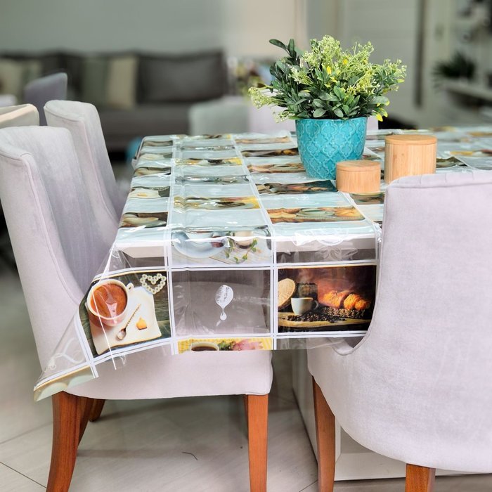 Com estampas vibrantes a Toalha Mesa TRANSPARENTE com ESTAMPAS possui uma plastificação que a torna impermeável e por isso, ela é responsável por proteger a sua mesa das avarias do dia-a-dia, e trazer ainda mais personalidade para sua cozinha.