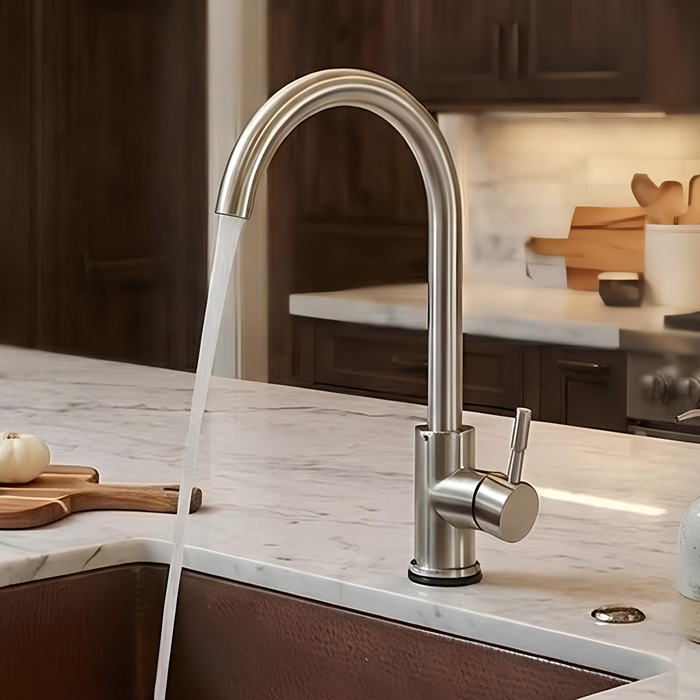 1. O Fim do "Cromado Descascando" (Aversão à Perda) Diferente das torneiras comuns que perdem o brilho e descascam em meses, nossa torneira possui acabamento em Aço Inox Escovado (Satinado). Além de um visual moderno e industrial, este acabamento disfarça riscos superficiais e marcas de dedos, mantendo a aparência de nova por anos.