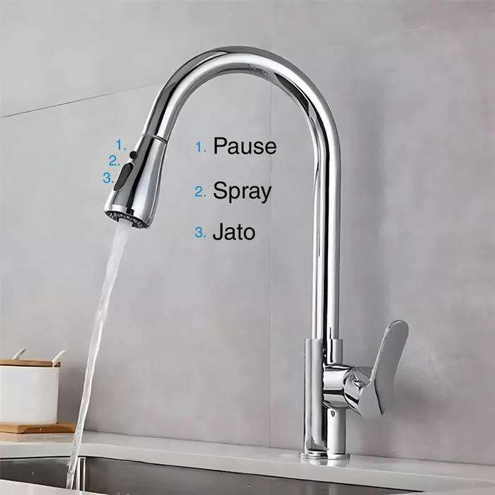 Torneira Cozinha Monocomando, 39cm Luwo-801, Bico Extensor cromado