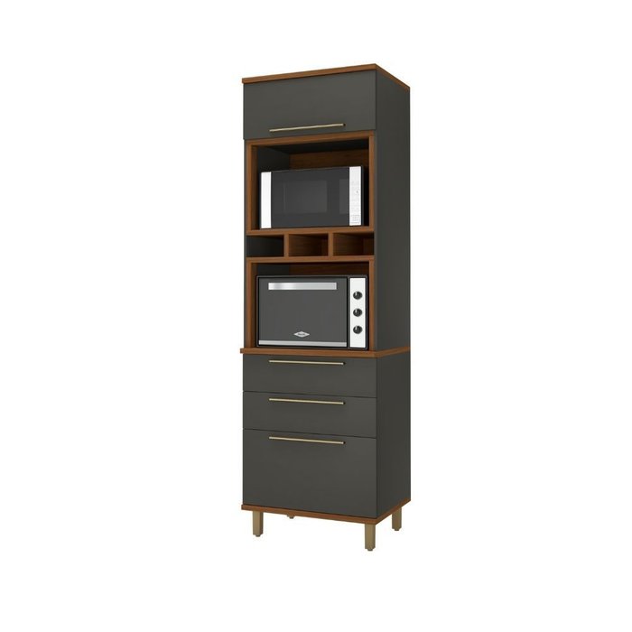 Torre Quente Munique - Mdp 1 Porta 3 Gavetas Espaço Forno e Micro-ondas - Indekes Chumbo