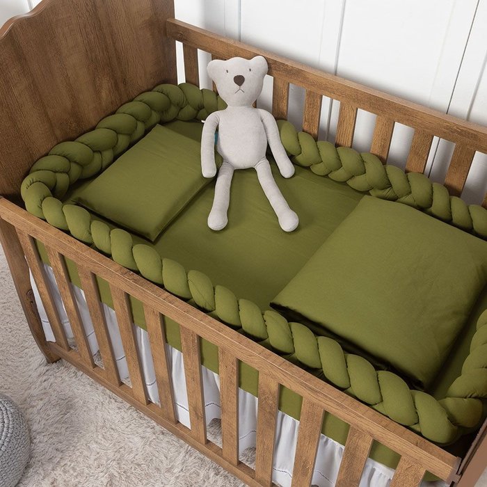 Trança Protetora para Berço e Cama Percal Verde Oliva