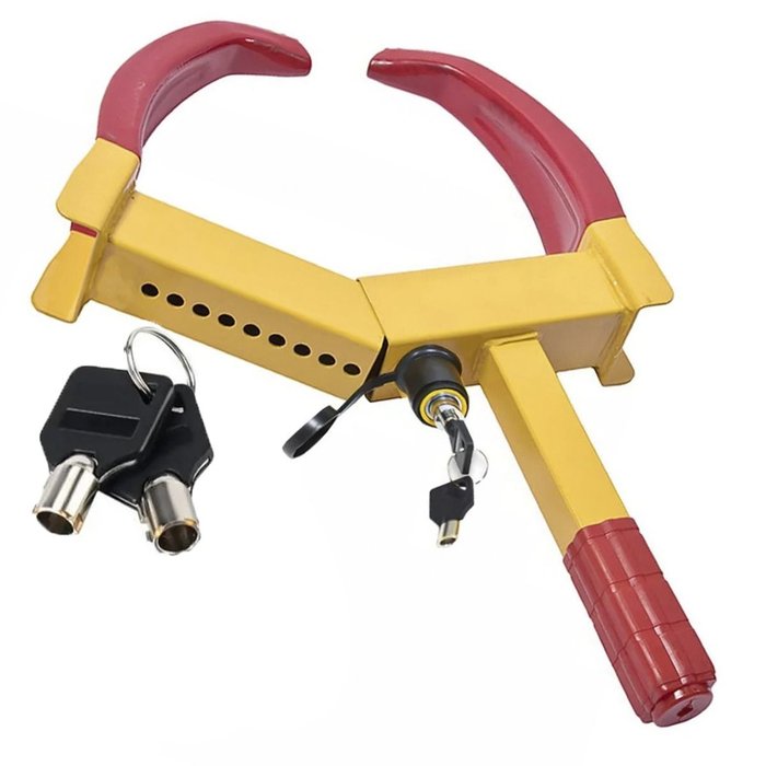 Trava de Pneu Universal Bloqueador de Roda Carro Moto Roubo Antifurto Estacionamento Seguranca Reboq Vermelho e Amarelo