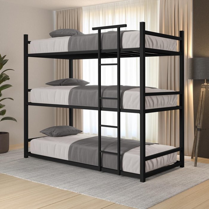 Treliche de Aço Industrial Solteiro 3 Camas Josy - Preto