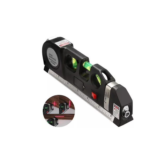 Laser com interruptor, base com régua em alumínio de 6 polegadas e trena de aço de 2,5 metros.