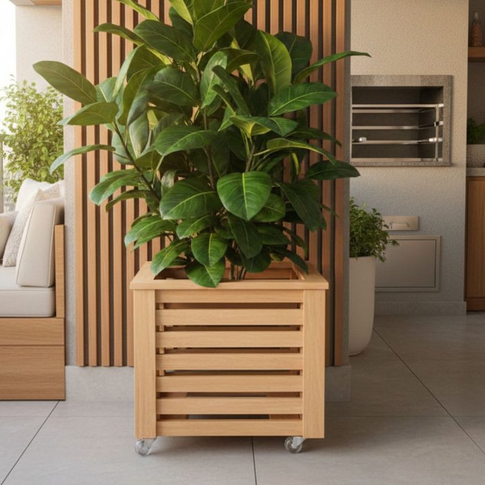 Vaso Cachepot Ripado de Madeira Eucalipto com Rodízio Decoração