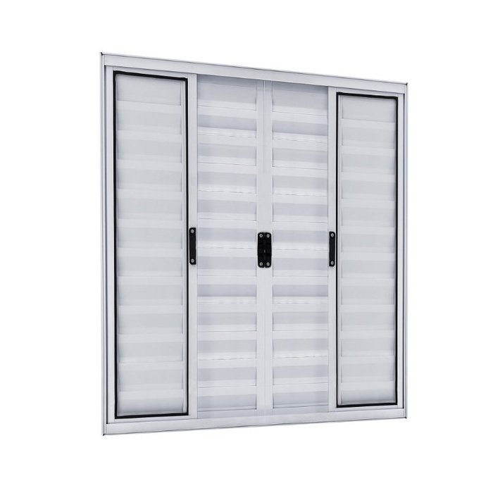 Veneziana 6 folhas, 2 fixas nas laterais e 4 centrais de correr, sendo 2 de palhetas e 2 de vidro. Pronta para instalação.