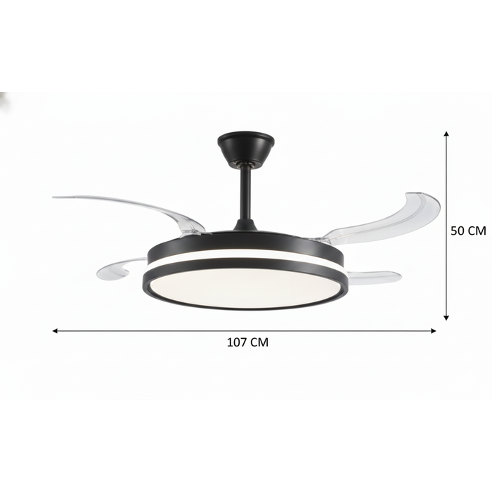 Ventilador de Teto Retrátil Compacto Preto com Led 60w e Controle Remoto