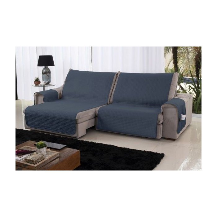 Xále Protetor Sofá Retrátil Reclinável Assento 2,20m Azul e Bege